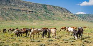 The summer rendezvous when the mustangs of Salt Wells Creek gather in Titsworth gap for a few days. Horses everywhere!